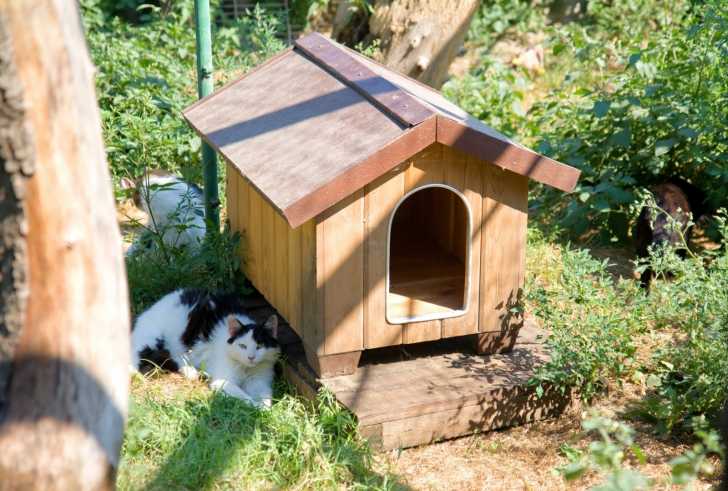 Les niches ou cabanes installées en extérieur sont un bon moyen de lui permettre de se protéger contre les intempéries, mais aussi contre les dangers potentiels de l’environnement pour le chat. Par exemple, si un matou voisin se met à le poursuivre, il pourra se réfugier dans sa cabane.