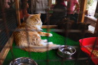 Une fois les formalités d’accueil effectuées, le chat peut être amené à l’emplacement communiqué par l’organisateur, qui comporte une cage de taille identique pour tous les participants. Le propriétaire est libre d’apporter sa propre cage, mais elle doit correspondre aux dimensions spécifiées dans le règlement du concours. Quoi qu’il en soit, il a alors tout le loisir de personnaliser cette dernière, par exemple avec des rideaux, rubans et accessoires fantaisie. C’est une opportunité de laisser libre cours à son imagination... et de passer le temps !