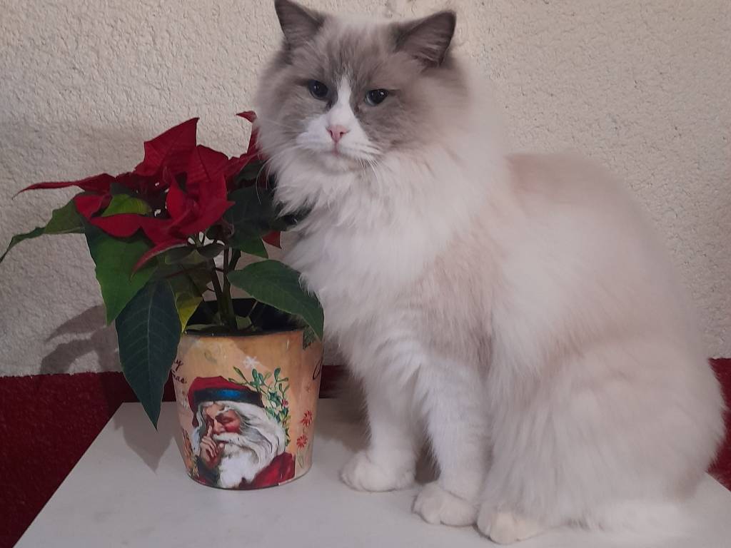 J'ai juste deux chattes : Urphée, Ragdoll née le 23/01/2013, et Violette, Bristish Longhair née le 11/06/2024. Elles n'auront qu'au maximum une portée par an, avec des papas choisis sans consanguinité et avec de beaux pedigrees.