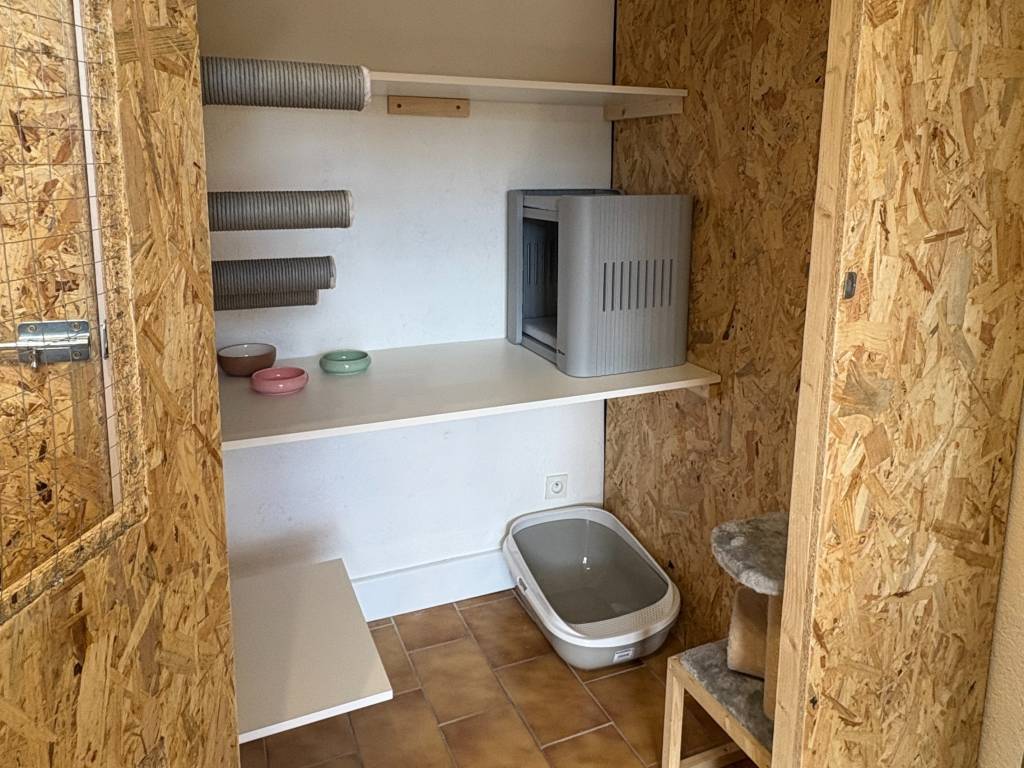Chaque chambre peut communiquer avec la chambre voisine si nous ouvrons le passage permettant l’accueil de plus large famille de chats.