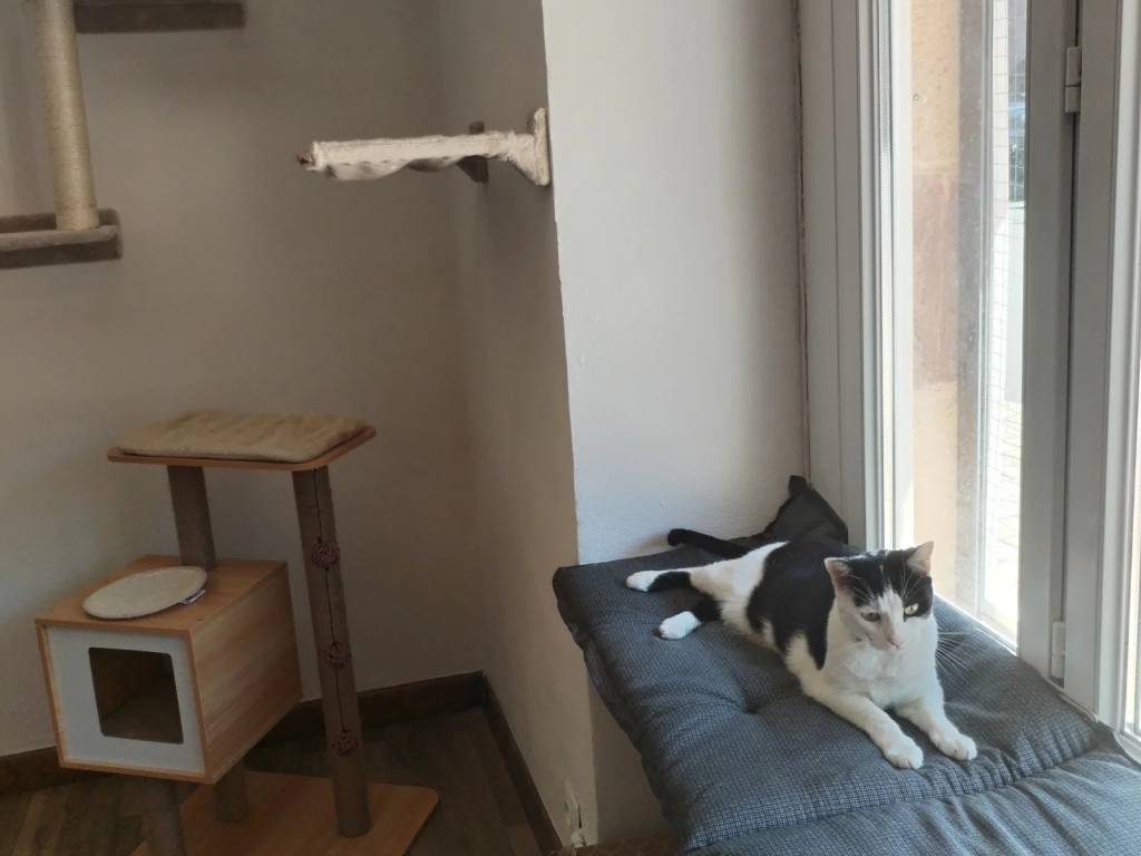 Les espaces sont aménagés avec des jeux, griffoirs et zones d’escalade afin de stimuler leur curiosité et leur motricité au quotidien. Les félins évoluent dans des espaces individuels d’environ 15 m², au sein d’un appartement de 35 m² divisé, avec la possibilité d’accueillir ensemble les chats d’une même famille.