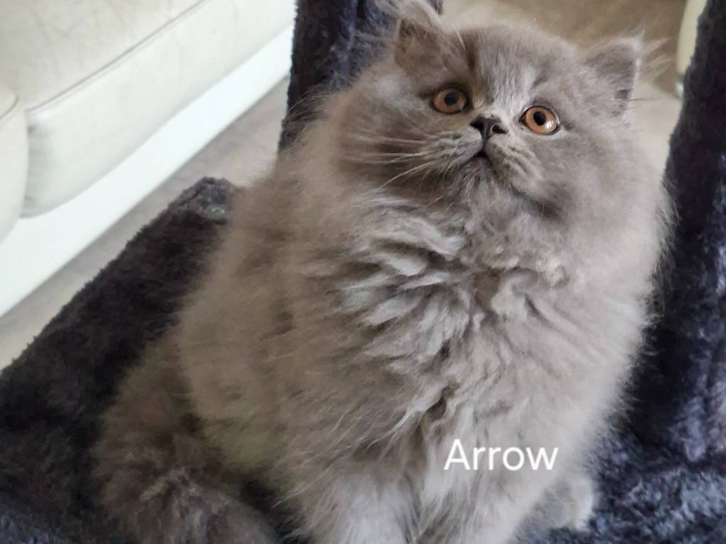 Voici nos 3 adorables chatons bleus, 2 British Longhair, Apollon et Arrow, et 1 British Shorthair, Albus.