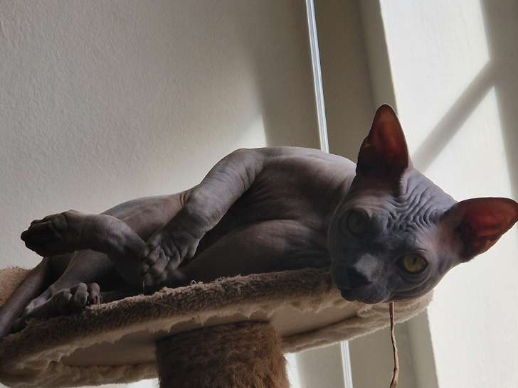 Mon Aaron est un Sphynx mâle de 1 an tout juste. Il est prêt pour sa première saillie.