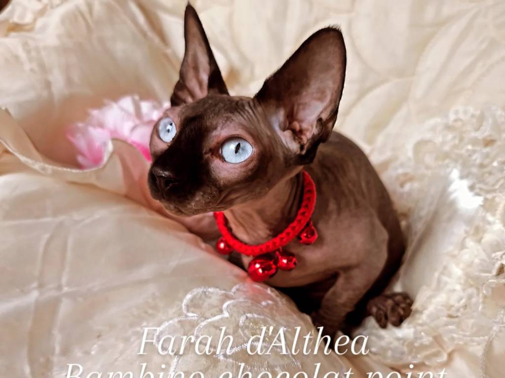Farah et Luffy sont les heureux parents d'un magnifique petit mâle Bambino straight (long). Sa couleur est encore à définir (chocolat point ou seal point).