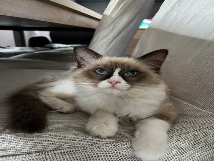J'ai un élevage familial. Mes Ragdolls vivent en toute liberté dans la maison et sont sociabilisés.