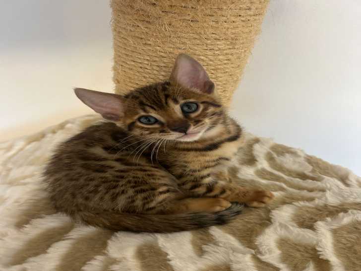 Adoptez un chaton Bengal pur race ! Nés et élevés avec tendresse dans notre foyer, nos chatons reçoivent chaque jour amour et attention. Cela leur permet de grandir équilibrés, sociables et affectueux. Ils...