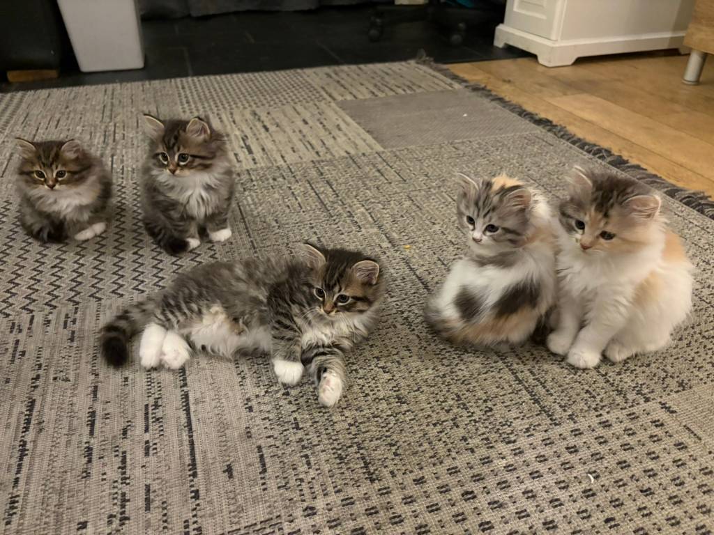 Nous avons le plaisir de vous annoncer la naissance de 5 magnifiques chatons Sibériens le 27/08/2025. Chacun à un pelage de couleur particulier.