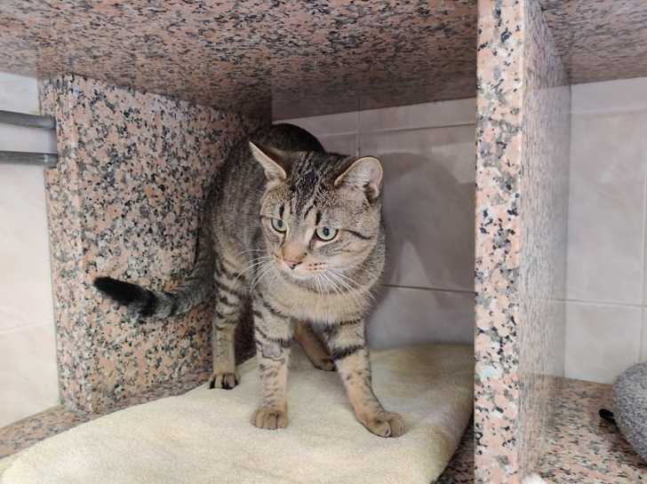 Sachat a pointé le bout de sa truffe le 8 février 2021. Ce magnifique matou de type Européen se montre aussi curieux que gentil. Sa jolie fourrure tigrée et son regard attendrissant ne manqueront pas de vous émouvoir.