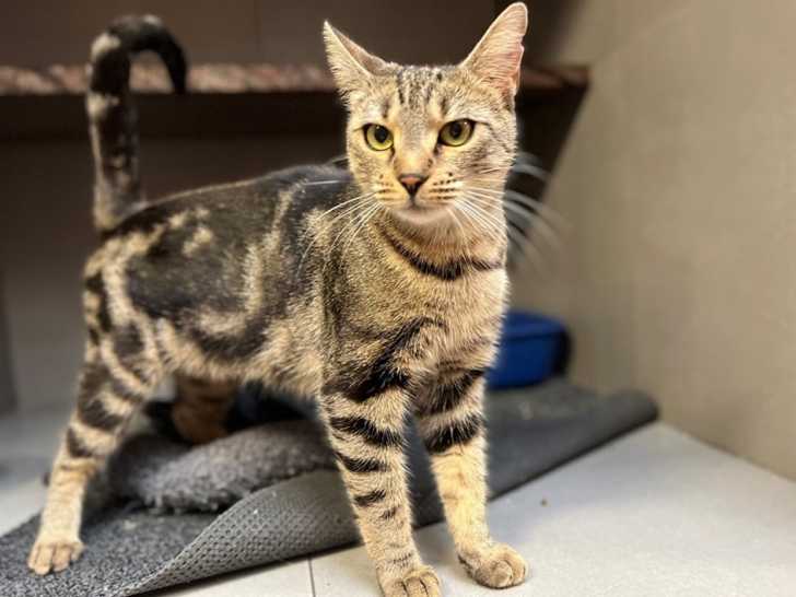 Cerise affiche une ravissante robe tigrée et un regard vif. Elle se sent bien dans ses pattounes. Cette adorable minette de type Européen a vu le jour le 1er janvier 2021. Son tempérament affectueux enchante les soigneurs.