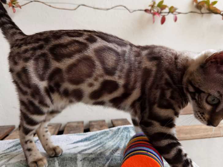 Des chatons Bengal sont à vendre. Il y a : - 2 silver foncé, 1 mâle et 1 femelle ; - 2 snow, 1 mâle et 1 femelle ; - 1 femelle silver. Les chatons sont née en mars ils sont déjà propres et en très bonne...