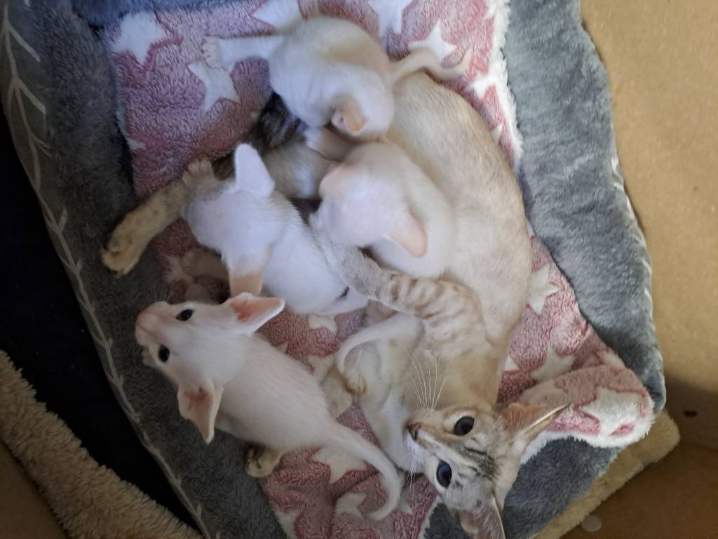 De magnifiques chatons "Oriental Shorthair " sont à vendre. Les deux parents sont des Orientaux, ils ne sont pas issus d'un croisement avec un Siamois. Les chatons sont nés le 10 juillet 2025 et seront disponibles le 1er octobre 2025.