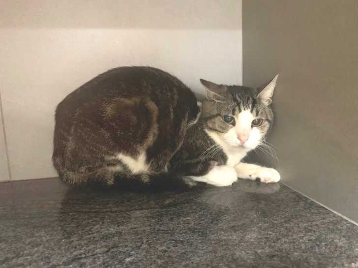Le regard de ce minou reflète la peur et l’angoisse. Il trouvera le bonheur au sein d’une famille patiente. Une panière confortable et l’assurance d’une gamelle bien remplie lui permettront de retrouver sa confiance en l’humain.