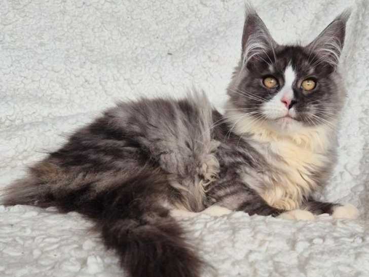 Nous proposons un superbe mâle Maine Coon noir et blanc né le 4 juillet 2025. Ce petit joueur et câlin, habitué à la vie familiale, aux chiens et enfants, représente l'excellence de notre élevage. Nous...