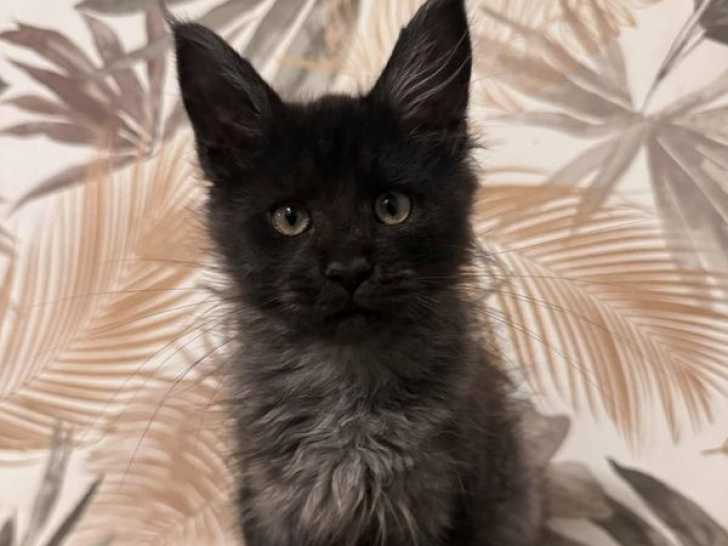 Nous proposons une chatonne Maine Coon black smoke née le 20 août 2025. Identifiée sous le numéro 250268780984836, elle est inscrite au Livre Officiel des origines Félines (LOOF) et ses deux parents le sont aussi en plus d'être visibles sur place.