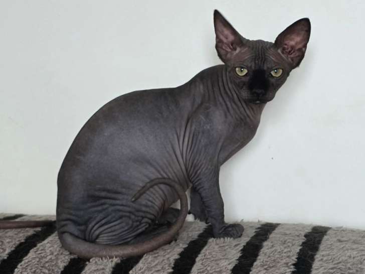 Suite à la réduction de mon élevage, je propose à l'adoption une très belle femelle Sphynx noire, âgée de 2 ans et demi. Cette chatte très câline, expressive et proche de l'humain est à jour de ses vaccins e...