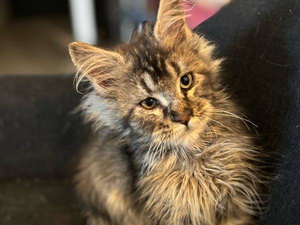 Apollon des Coon du Pic, mâle Maine Coon brown, est né le 30 mai 2025. Ce petit joueur et câlin bénéficie d’une socialisation parfaite et grandit entouré d’amour.