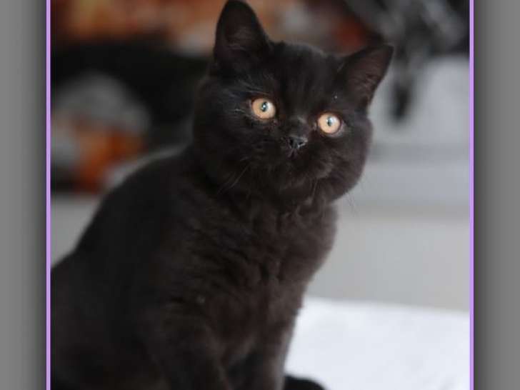 La chatterie Carbin en Franche-Comté vous propose Andy, un chaton mâle British Shorthair couleur noir aux yeux orange, né le 25 juillet 2025. Habitué à la vie de famille, ce petit est disponible à la vente.