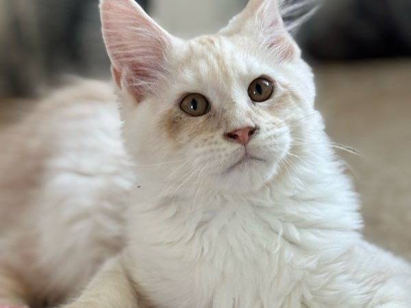 Baby cat est un adorable Maine Coon mâle crème que nous proposons à la vente. Il grandit en famille et bénéficie d'une excellente socialisation avec les enfants et les autres animaux.