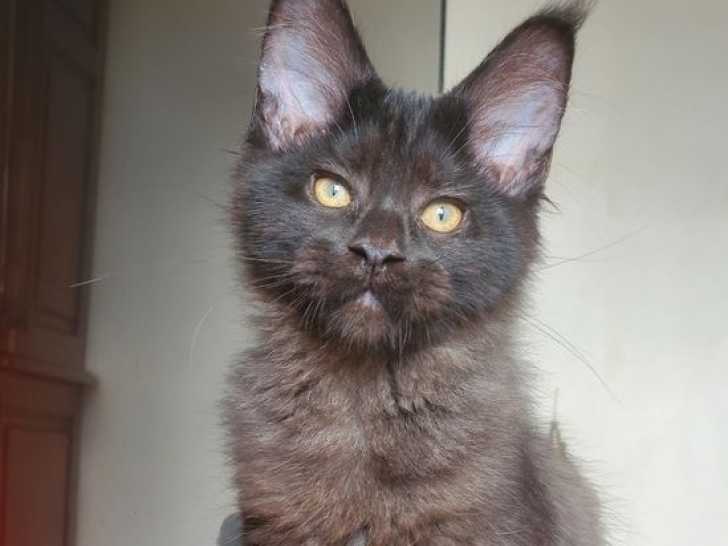 La chatterie Des Sables d’Égypte vous propose Aeros, chaton mâle Maine Coon noir, né le 26 mai 2025. Il est très actif, curieux et câlin, prêt à rejoindre sa nouvelle famille.