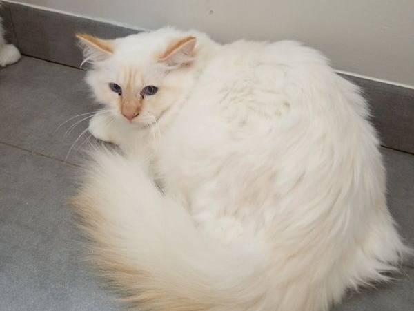 Notre petit Sacré de Birmanie, né le 9 mars 2025, est issu d'une lignée sélectionnée. Il est sociable et possède un caractère équilibré.