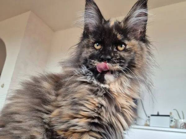 Abby est un adorable chaton femelle Maine Coon, âgée de 3 mois et demi. Cette vraie boule de tendresse très sociable, au look sauvage, grandit en famille et aime être manipulée.