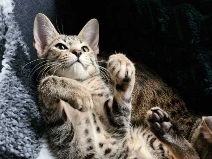 Chatons Savannah F5 disponibles Photo 1 : la femelle black spooted Photo 2 : le papa Voyou Photo 3 : la maman Vénus Nés le 11 octobre 2025, issus d’un superbe mariage entre Vénus (black spotted tabby)...