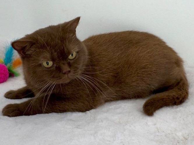 Cinnamon, femelle British Shorthair inscrite au Livre Officiel des Origines Félines (LOOF) âgée de 5 ans, est disponible pour adoption. Cette minette gentille et sociable aime la compagnie et cherche un foyer sans autres animaux.