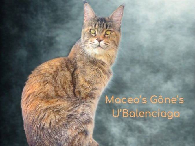 Nous proposons notre belle Baloo, une Maine Coon adulte à la vente pour une retraite bien méritée. Née le 8 février 2023 et inscrite au Livre Officiel des Origines Félines (LOOF), cette femelle confirmée en exposition est testée saine de myocardiopathie hypertrophique (HCM), déficience en pyruvate kinase (PKDEF), atrophie musculaire spinale (SMA).