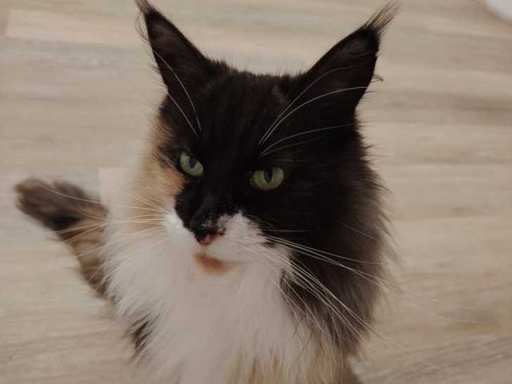 La Chatterie des Roses de Velours propose Marvel, une femelle Maine Coon black tortie smock et blanche née le 18 juin 2019, pour une retraite bien méritée. Après deux portées, cette douce et câline dame inscrite au Livre Officiel des Origines Félines (LOOF), vite stressée en cas de conflits, recherche une famille sans autres chats ou chiens.