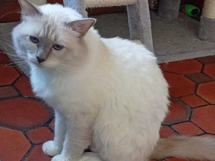 Un mâle Sacré de Birmanie lilac point est disponible, élevé dans un environnement familial avec enfants et autres animaux. Il est inscrit dans le Livre Officiel des Origines Félines (LOOF) et socialisé pour faciliter son intégration.