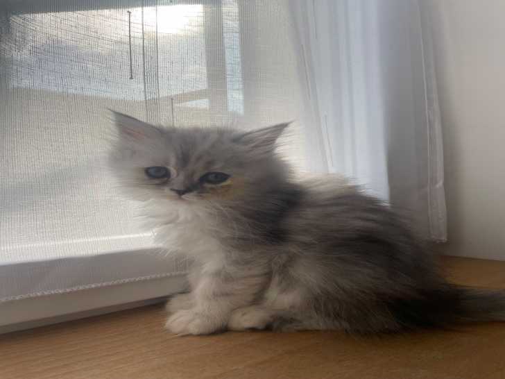 La mère est une femelle Maine Coon croisée Persan, et le père est un Persan chinchilla.