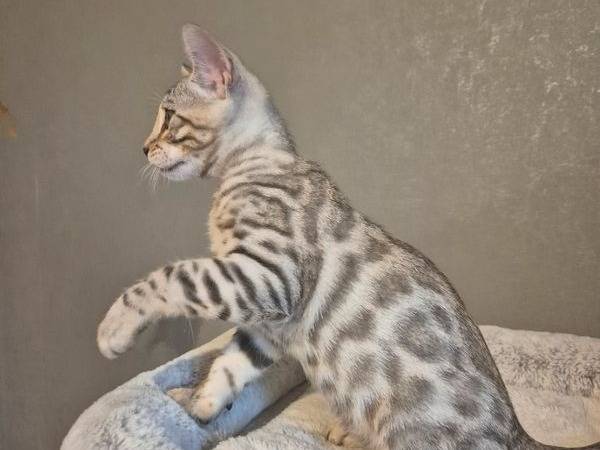 La chatterie des Terres de Gaïa vous propose à la vente deux chatons Bengal nés le 10 juillet 2025. Leur robe brown spotted tabby rosetted et leur port génétique cb ou cs (lynx ou sépia) les rendent uniques.