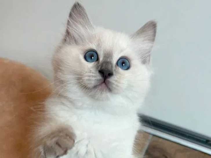 Arizonna et Avery, deux chatons Ragdoll nés les 3 et 4 mai 2025, sont disponibles à la vente pour 1500 euros chacun. Arizonna est une femelle lilac point très joueuse, tandis qu’Avery, mâle seal mitted avec flamme, adore les câlins.