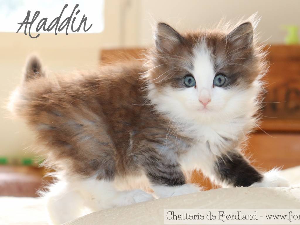 - Aladdin, mâle black silver mackerel tabby et blanc ;