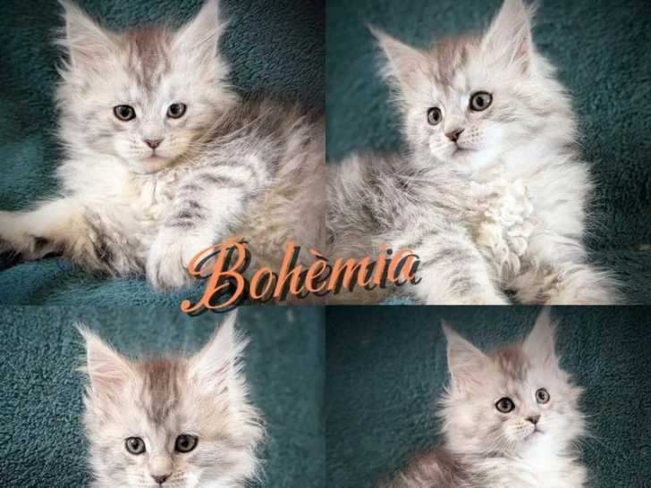 La Chatterie du Maine Coon Coeur propose trois chatons femelles de race Maine Coon, nées le 26 février 2026 et non inscrites au Livre Officiel des Origines Félines (non LOOF). Bohemia, Brandy et Butterfly sont les trois femelles disponibles d'une portée de sept chatons.