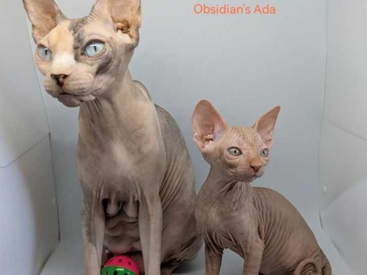 Nous présentons Arya, Aston et Austin, nées le 17 juin 2025, trois chatons femelles sphynx au pelage nu et aux yeux bleus fascinants. Elles appartiennent à une portée de sept, dont les autres membres sont déjà réservés.