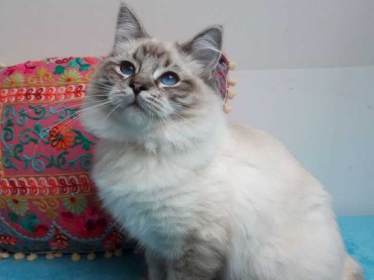Nous proposons à l'adoption Aïko, une très jolie femelle Ragdoll seal tabby point (porteur chocolat), née en 2025. Sa mère, Sarasvati, est Grande Championne d'Europe, et son père, Unakani, est Grand Champion...