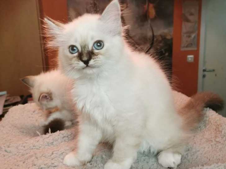 Nous proposons à la réservation Archi, Atchoum et Aslann, trois mâles Sacré de Birmanie nés le 29 mai 2025. Leurs robes chocolat point et crème point leur confèrent une élégance rare. Le prix est de 990...