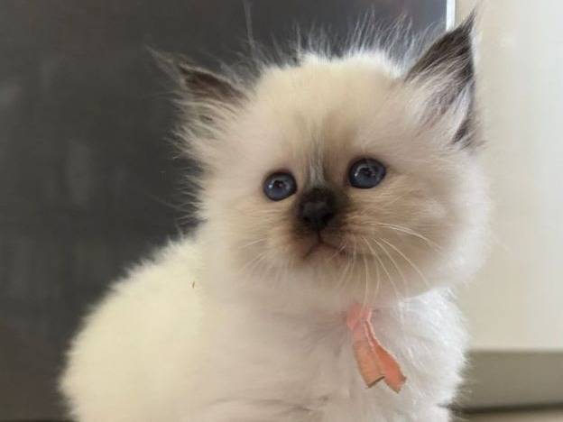 Nous avons la joie de vous présenter trois magnifiques chatons Sacrés de Birmanie nés le 13 août 2025 dans notre élevage familial. Ces petits trésors, élevés avec amour, seront disponibles pour 1 070 euros à partir du 13 novembre 2025.