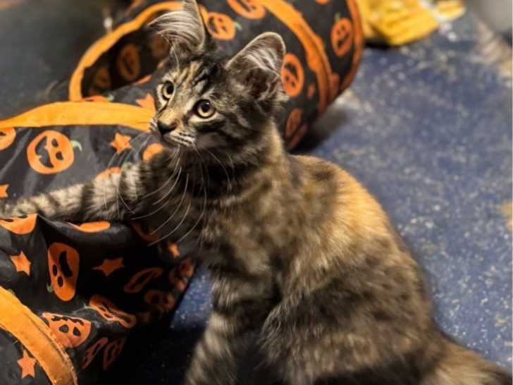 Pour 700 euros, adoptez l'une de nos trois magnifiques chatons Norvégiens, toutes femelles nées le 5 mai 2025. Ces joueuses invétérées adorent particulièrement chasser les plumes.