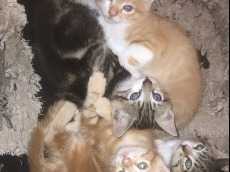 Les deux chatons gris sont assez peureux, mais quand ils connaissent la personne ils sont très à l'aise. Les deux chatons orange sont les plus joueurs.