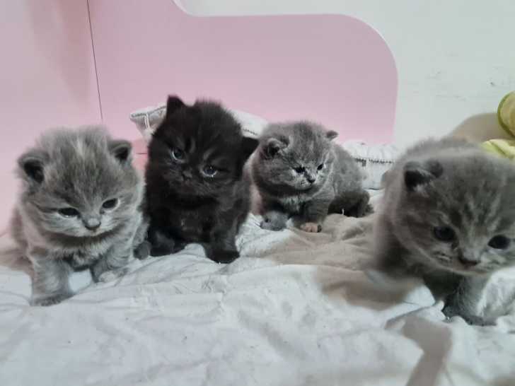 4 chatons Brisith Shorthair sont disponibles à la réservation. Ils sont issus de parents British Shorthair. Le papa est bleu (sans LOOF), la maman est chocolat tortie (avec LOOF).