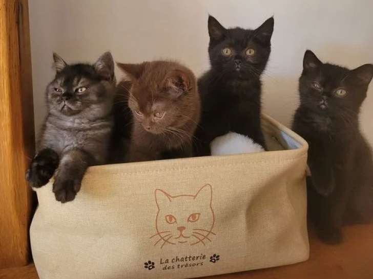 La Chatterie des Trésors vous présente quatre chatons femelles British Shorthair, nées le 23 janvier 2026, inscrites au Livre Officiel des Origines Félines (LOOF).