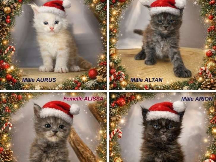 Nous avons le plaisir de vous proposer à la réservation quatre adorables femelles Maine Coons, nées le 30 août 2025 à la chatterie de Tsarine Ville. Vous avez le choix entre trois black tortie et une blac...