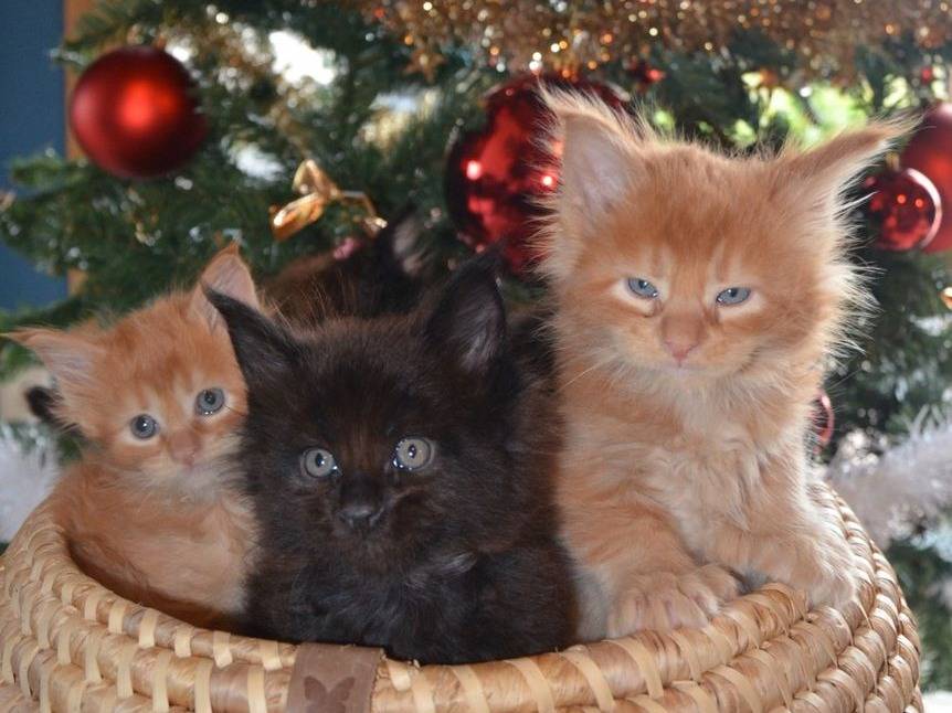 Sur une portée de cinq chatons Maine Coon nés le 28 octobre 2025, quatre bébés restent disponibles à la réservation. Nous proposons un mâle black solide, un second mâle black solide, une femelle red blotched tabby et une femelle black tortie, tous inscrits au Livre Officiel des Origines Félines (LOOF).