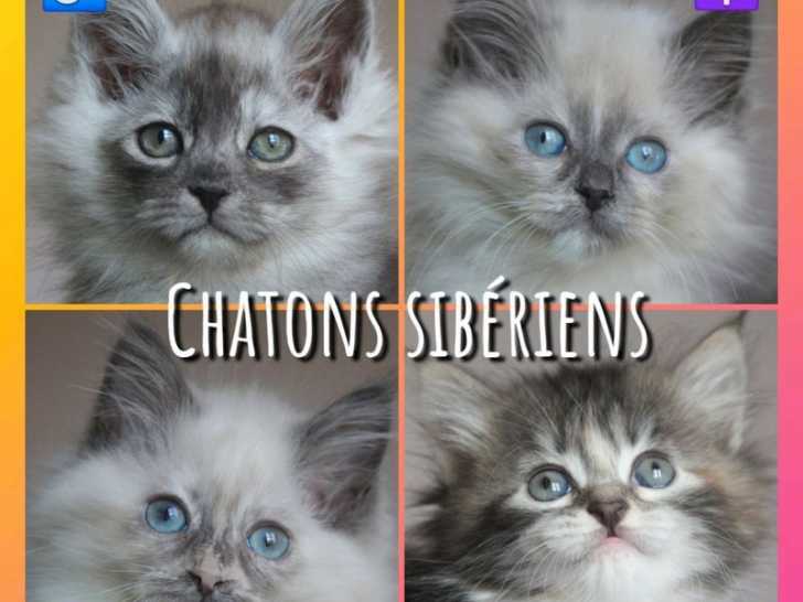 Quatre chatons Sibériens (trois femelles et un mâle), race réputée hypoallergénique, sont disponibles à la réservation. Ils sont nés début avril et sont prêts à partir depuis fin juin, socialisés avec des chiens et des enfants.