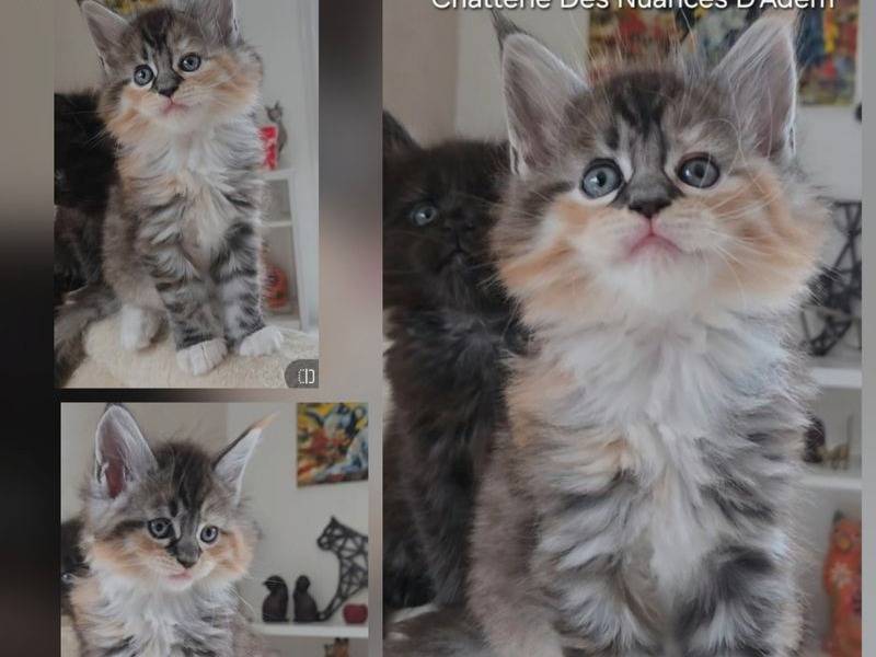 Notre petite chatterie familiale propose à la réservation trois magnifiques chatons Maine Coons. Il reste une femelle blue tortie et deux mâles black smoke et crème silver shaded disponibles. Ces bébés...
