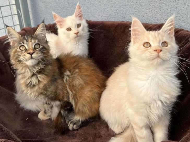 Nous cherchons de nouvelles familles pour nos cinq chatons Maine Coons. Ces trois femelles et ces deux mâles sont âgés de cinq mois et peuvent quitter la chatterie dès maintenant.