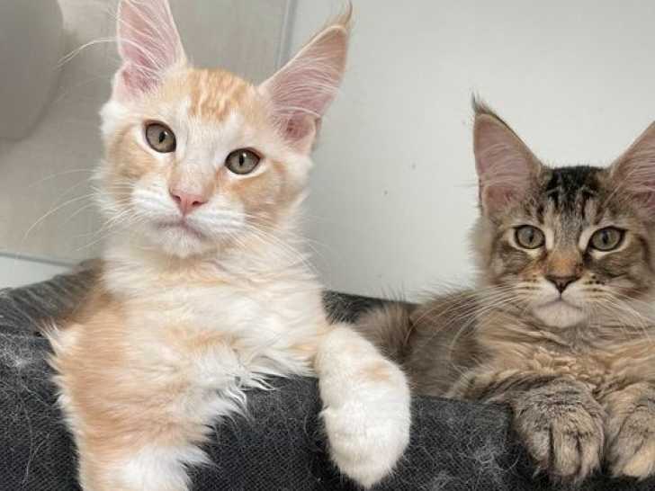 La chatterie des Mimoux Coons dans la Sarthe propose Aslan (brown ticked tabby) et Alvin (red ticked tabby), deux superbes chatons mâles Maine Coon nés le 24 août 2025. Élevés à la maison et manipulés par nos 4...