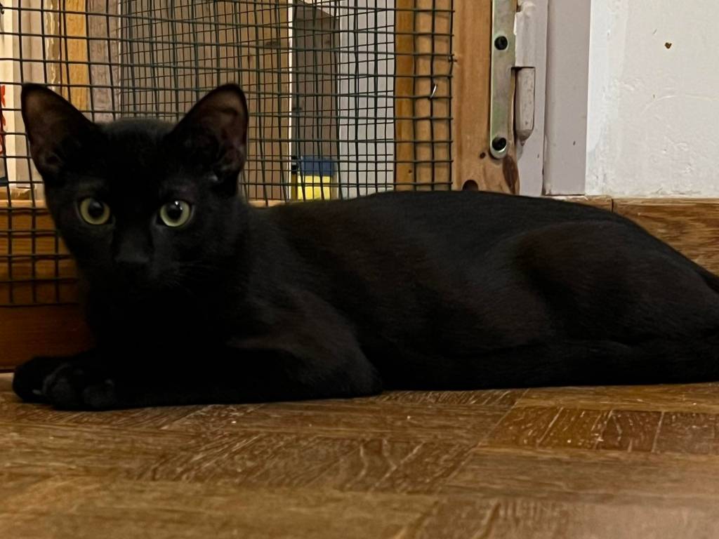 De couleur noire, Bat est un chaton mâle âgé de cinq mois que nous mettons disponible à l'adoption. Il aura besoin d’un peu de temps pour s’adapter à son nouvel environnement.